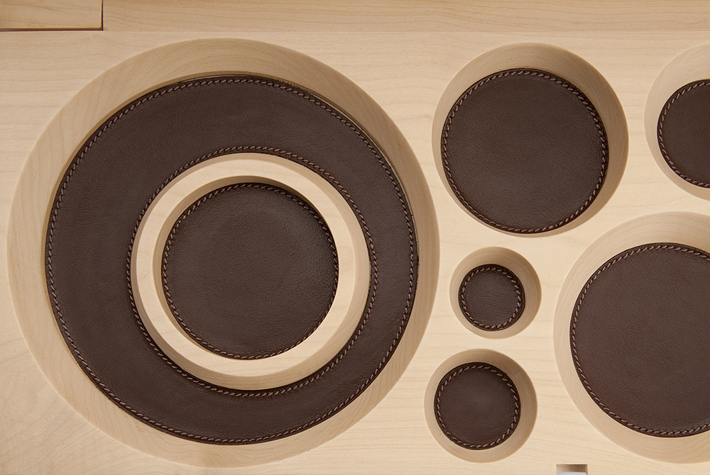 P.- ¿Cuáles son los pasos a seguir?R.- El primer paso es escoger la madera adecuada. Las cajas están hechas de nogal americano y escogemos las piezas de mayor calidad. El siguiente paso se hace con maquinas de control numérico, que hacen el vaciado de las piezas macizas, luego la caja es lijada, montada y barnizada. Por último se colocan los accesorios de piel.