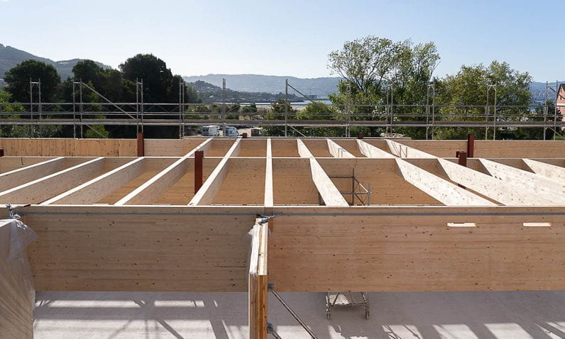 En cuanto a la madera suministrada por Besteiro, hablamos de 200 m³ (vía Mayr Melnhof Holz) de madera laminada de abeto y 700 m³ de CLT (Pino autóctono gallego, vía XILONOR).